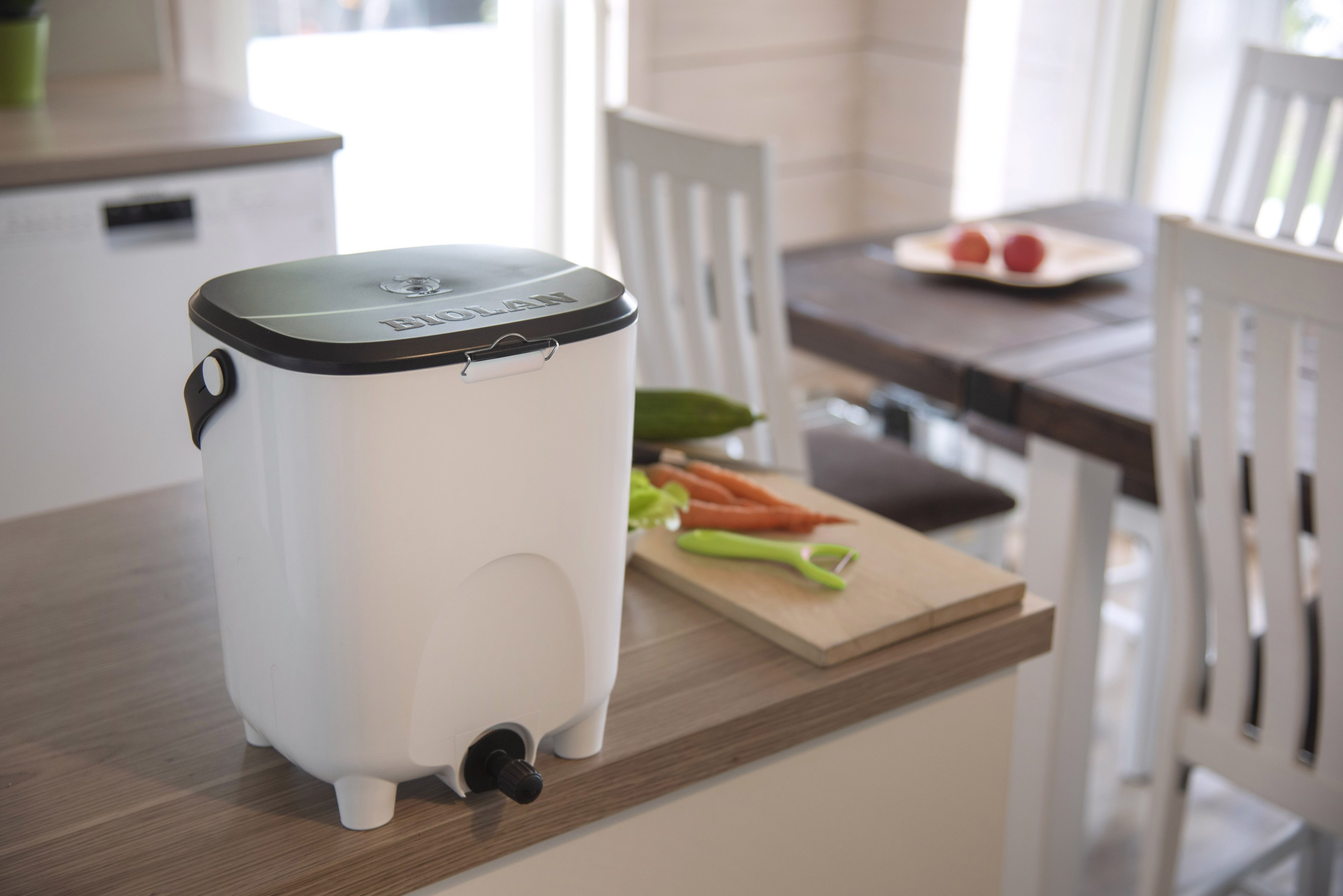 Versuchen Sie, den Bokashi-Behälter nicht zu oft zu öffnen. Fügen Sie zum Beispiel einmal täglich Biomüll hinzu, indem Sie den Biomüll, der in die Bokashi-Tonne in der Küche eingefüllt werden soll, in einem Deckelbehälter aufbewahren.