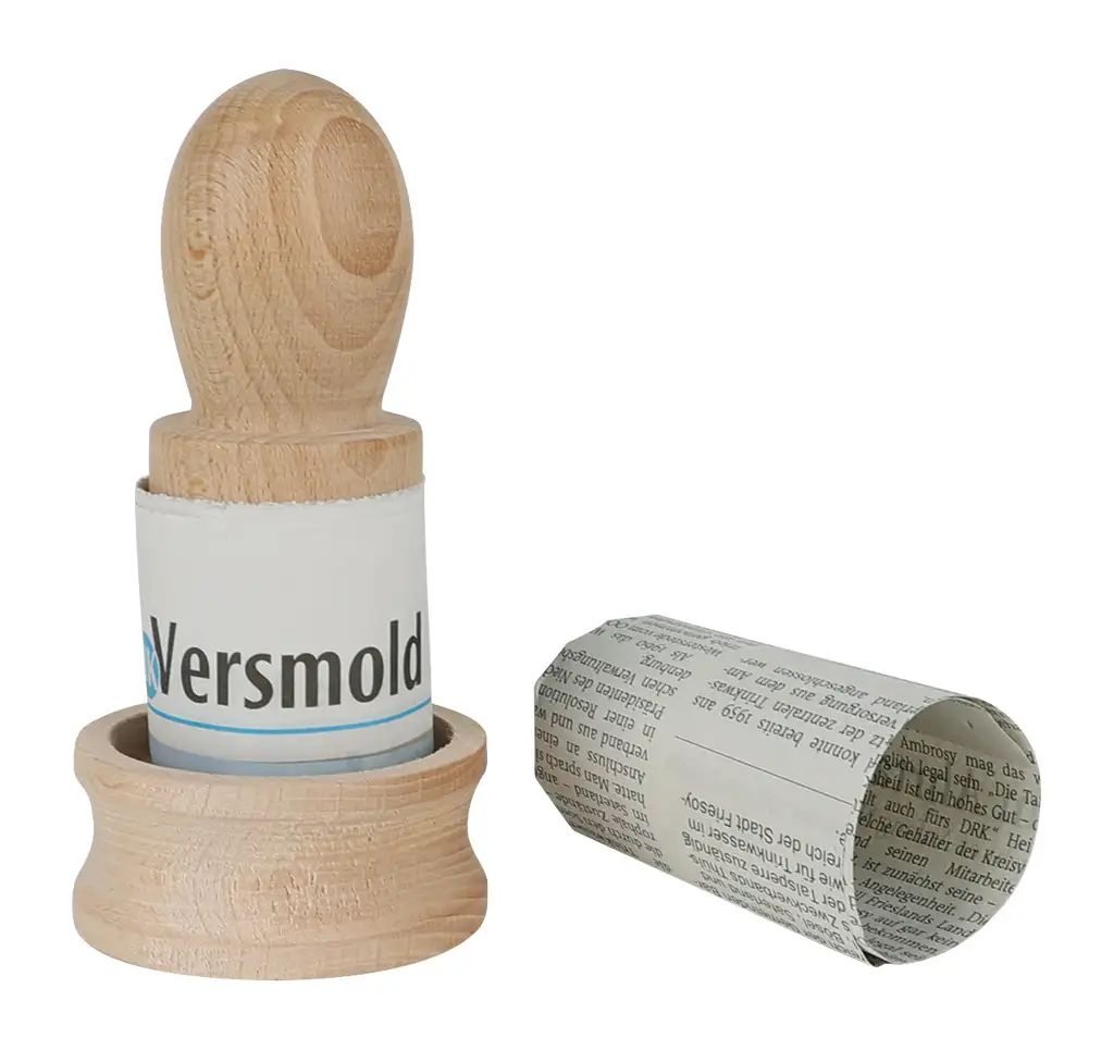 2. Den Stempel mit einem Streifen Zeitungspapier umwickeln. Dabei oben nur wenig überstehen lassen, während unten mehr Rand bleibt, um später den Boden zu formen.